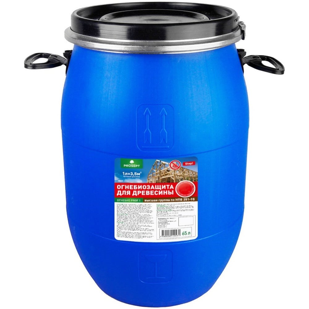 Огнебиозащита для древесины PROSEPT ОГНЕБИО PROF 2-ая группа, 65 л 006-65 комплексная огнебиозащитная пропитка для древесины, используемой внутри помещений и на открытом воздухе без прямого воздействия атмосферных осадков и контакта с грунтом. Пропитка защищает от возникновения и распространения огня, а также от воздействия насекомых и грибков.Переводит древесину в трудновоспламеняемый материал. Подходит для обработки как новых конструкций, так и ранее обработанных огнезащитными составами. Пропитка устойчива к старению, не высаливается и не выщелачивается. Не оказывает негативного воздействия на свойства древесины, не изменяет ее структуру, не препятствует дальнейшей обработке, склеиванию и окраске любыми ЛКМ. При обеспечении невымываемости препарата, срок защиты составит не менее 7 лет. Подтверждено тестами.При воздействии высоких температур на обработанной древесине протекает химическая реакция с высоким поглощением тепла и выделением негорючих газов. Одновременно на поверхности древесины образуется огнестойкий теплоизоляционный слой, который перекрывает доступ кислорода, не дает возможность древесине поддерживать горение.Обработку древесины рекомендуется проводить при температуре воздуха и обрабатываемой поверхности не ниже +5°С.Суммарный расход для обеспечения огнезащитных свойств по II группе (трудновоспламеняемая древесина) — не менее 300 г/м².Обработанную древесину следует защитить от попадания воды и атмосферных осадков.
