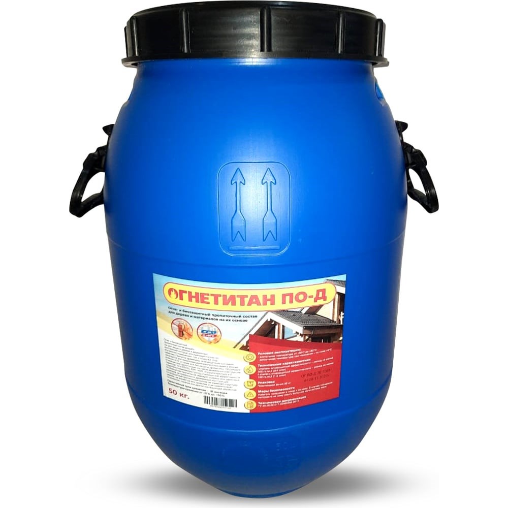 Огнебиозащита Огнетитан ПО Д 50кг БП-00000943 - пропиточный состав разработанный для защиты дерева и деревянных конструкций которые эксплуатируются как во внутренних помещениях, так и снаружи (под навесом). Пропитка древесины огнезащитным составом проводится для предотвращения распространения и возникновения огня, а также для биозащиты древесины.Обработка огнезащитным пропиточным составом деревянных конструкций переводит их в К0(15), КМ1, КМ2, I(трудногорючую) и II (трудновоспламеняемую) группу огнезащитной эффективности. Огнезащитная пропитка не образует солевых или щелочных разводов на поверхности деревянных конструкций. Огнезащитный пропиточный состав не изменяет структуру дерева, не влияет на его свойства и не препятствует склеиванию, окраске или другой последующей обработке