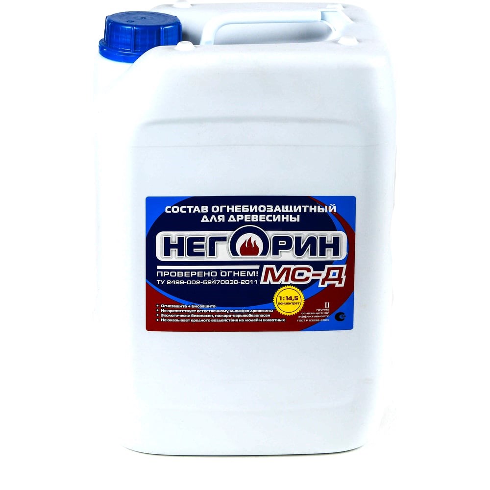 Огнебиозащита Woodstock НЕГОРИН-МС-Д концентрат 1:14,5 10 кг (155 кг готового состава) ЗОР00005353 применяется внутри сухих помещений. Продукт защищает деревянные конструкции от биологического воздействия (грибок, плесень), а также снижает их пожароопасность (2 группа). Экологичный состав абсолютно безопасен для здоровья человека.