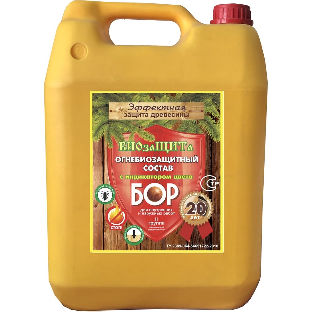 Огнебиозащитный состав 2 гр. с индикатором цвета Бор канистра 10 кг 4690417004539 предназначен для комплексной защиты древесины от воспламенения, распространения пламени и биологического разрушения внутри помещений и на открытом воздухе под навесом без контакта с грунтом, воздействия атмосферных осадков и почвенной влаги. Рекомендуется для обработки стропил, обрешетки, мауэрлатов, каркасов под обшивку, чердачных помещений и фронтов, свесов и карнизов крыш в зданиях с мансардой, перекрытий, балок, перегородок, стен и др. деревянных конструкций, на расчетный срок огнезащиты 3 года. Допускается применять состав для биозащиты поверхностей, эксплуатируемых на открытом воздухе при условии последующего покрытия атмосферостойкими материалами БОР.