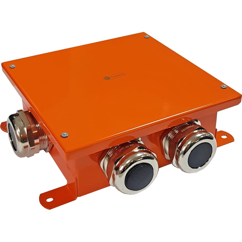 Дополнительные характеристики металлической коробки Экопласт SMB165, огнестойкая E-110, о/п 164x164x65, 6 метал. гермоввода 56439: Поставляется с установленной клеммной частью. Допустимое рабочее напряжение: до 1000В. Металлические герметичные кабельные вводы под кабель с внешним диаметром 14-25 мм. В коробке установлен проводник заземления. Удобный монтаж на различные типы огнестойкой поверхности. Количество полюсов - 6. Сечение проводника - 2,5-16 мм2.