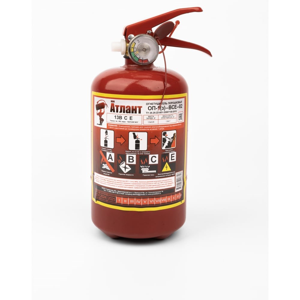 Огнетушитель порошковый ОП-1 BСЕ Атлант: надежная защита для дома и автомобиляПереносной порошковый огнетушитель Атлант ОП-1 BСЕ обеспечивает надежную защиту от пожаров и возгораний. В качестве заряда используется огнетушащий порошок массой 1 кг, который эффективно гасит различные виды пожаров.Подходит для использования как в автомобиле, так и в доме. Для установки используется специальное приспособление: подставка для огнетушителя или держатель (кронштейн) огнетушителя.Огнетушитель порошкового типа подходит для разных видов пожаров. Порошковый состав эффективно гасит пожары и возгорания, предупреждая возможные серьезные последствия.Соответствует ГОСТ и всем стандартам безопасности.Выбирая огнетушитель порошковый ОП-1 BСЕ, вы заботитесь о своей безопасности и безопасности своих близких.