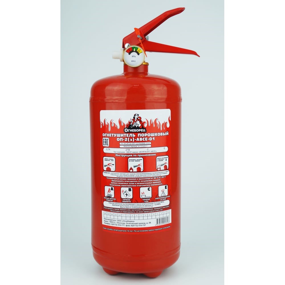 Наша компания "Огнеборец" - одна из крупнейших среди производителей и поставщиков противопожарного оборудования. Продукция и материалы имеют соответствующие сертификаты. Предлагаем Вам огнетушитель автомобильный 2024 года выпуска ОП-2 АВСЕ, который служит первичным средством пожаротушения. Это надежный способ обезопасить себя и окружающих. Порошковый авто огнетушитель позволит Вам ликвидировать обнаруженный очаг возгорания частично или полностью до приезда пожарной охраны. С его помощью Вы сможете потушить твердые (А), жидкие (В) и газообразные (С) горючие вещества, а также электроустановки под напряжением до 1000 V (Е). Чтобы минимизировать риск пожара, важно приобрести огнетушитель в машину. Он легко поместится в багажнике или под сиденьем Вашего автомобиля, всегда будет готов к использованию в случае необходимости. Такое средство пожаротушения может быть использовано не только в авто, но и на работе или как огнетушитель для дома. Огнетушащий баллон оснащен манометром для отслеживания уровня давления. После применения его нужно перезарядить. Срок службы десять лет, а перезаряжать необходимо каждые пять лет. Иметь ОП-2 в зоне доступа — значит быть готовым к быстрому и эффективному реагированию в случае возникновения возгорания. Убедитесь, что в Вашей машине всегда есть порошковый автомобильный огнетушитель и Вы знаете, как им пользоваться.