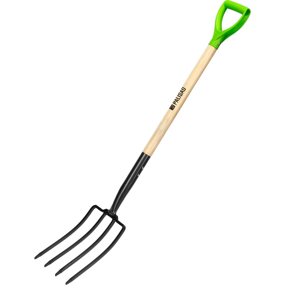 Огородные кованые 4-рогие вилы Palisad с деревянным лакированным черенком, используются для работ на загородном участке. Удобны для вскапывания, рыхления почвы и аэрации грунта, а также для выкапывания корнеплодов. Инструмент пригодится владельцам подсобных хозяйств. Надежность и долговечность — вилы изготовлены из прочной кованой стали, рабочая часть покрыта порошковой эмалью для защиты от коррозии. Общая длина 1165 мм — инструмент снижает усталость и нагрузку на позвоночник во время длительной работы. Комфортная работа — деревянный черенок и дополнительная рукоятка обеспечивают надежный и удобный хват.