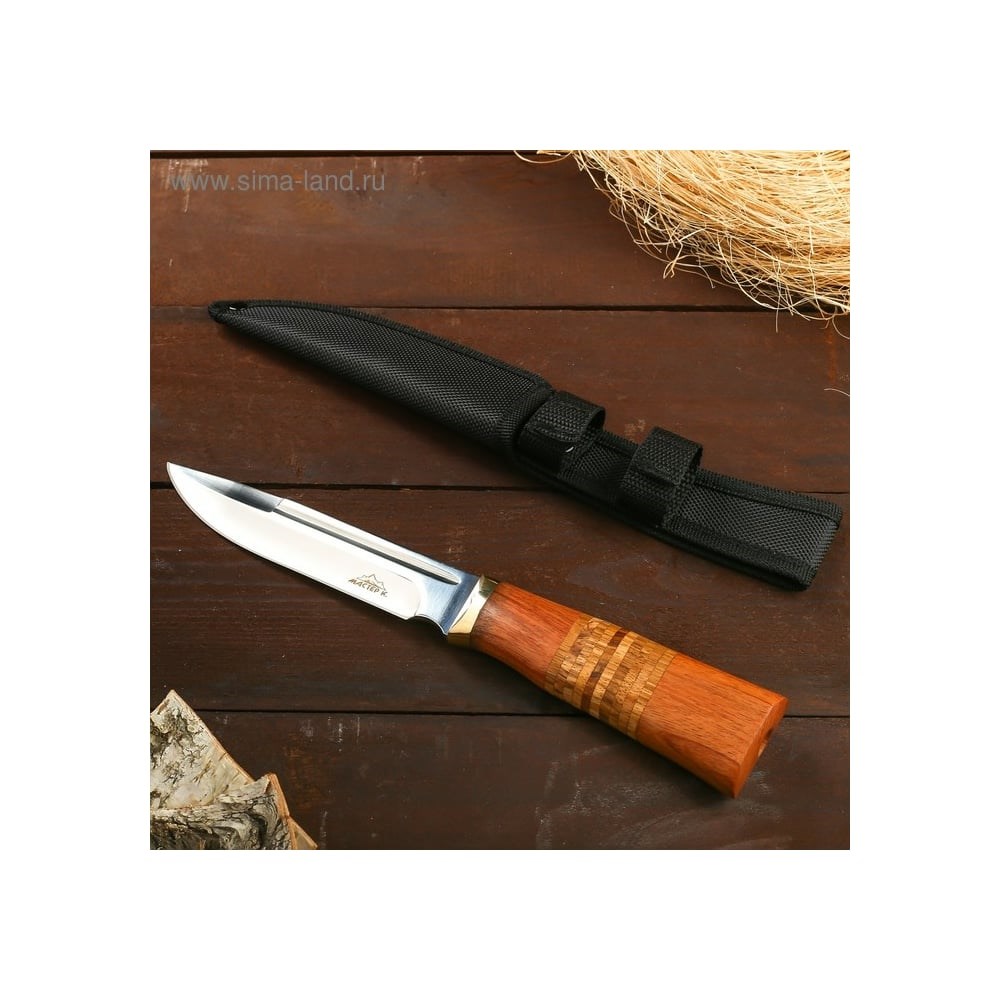 Охотничий нож Мастер К лезвие 14 см, в чехле, деревянная рукоять с пробковой вставкой 1297734 оснащен достаточно прочным и твердым лезвием, поэтому подходит для интенсивного использования. Быстро точится и благодаря высокому содержанию хрома устойчиво к ржавчине. Из минусов — не терпит больших ударных нагрузок, так что открывать консервы таким ножом не получится.