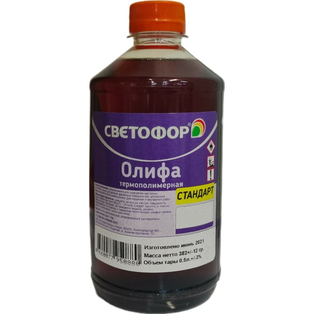 Олифа Светофор 0.5 л ЗОР00002630 предназначена для разведения масляных густотертых красок, для пропитки деревянных поверхностей, штукатурки перед окраской их масляными красками. Состав: смола нефтеполимерная, углеводородный растворитель.