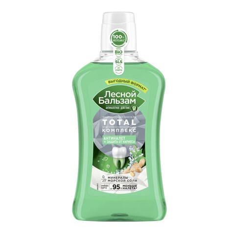 Попробуйте новый ополаскиватель для комплексной защиты зубов и десен ЛЕСНОЙ БАЛЬЗАМ серии "ТОТАЛ Комплекс" со вкусом "Экстракт имбиря". В составе 98% ингредиентов натурального происхождения (в том числе морская соль и чай матча).