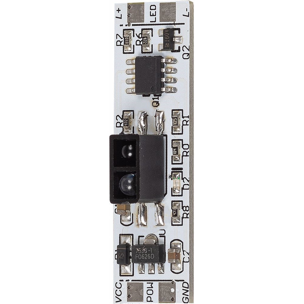 Бесконтактный выключатель светодиодной ленты MAKSILED встраиваемый в профиль 12В, 30Вт, 1x2.5A, IP20, 41x12x8мм ML-MC-IR предназначен для включения и выключения светодиодной ленты взмахом руки (без физического воздействия). Достаточно пронести руку в нескольких сантиметрах от датчика. Производите установку, предварительно выключив электричество согласно обозначениям маркировок выводов/площадок под пайку на печатной плате выключателя (не имеет функции защиты от неправильного подключения). Перед применением обязательное приклеивание изделия на двухсторонний скотч.
