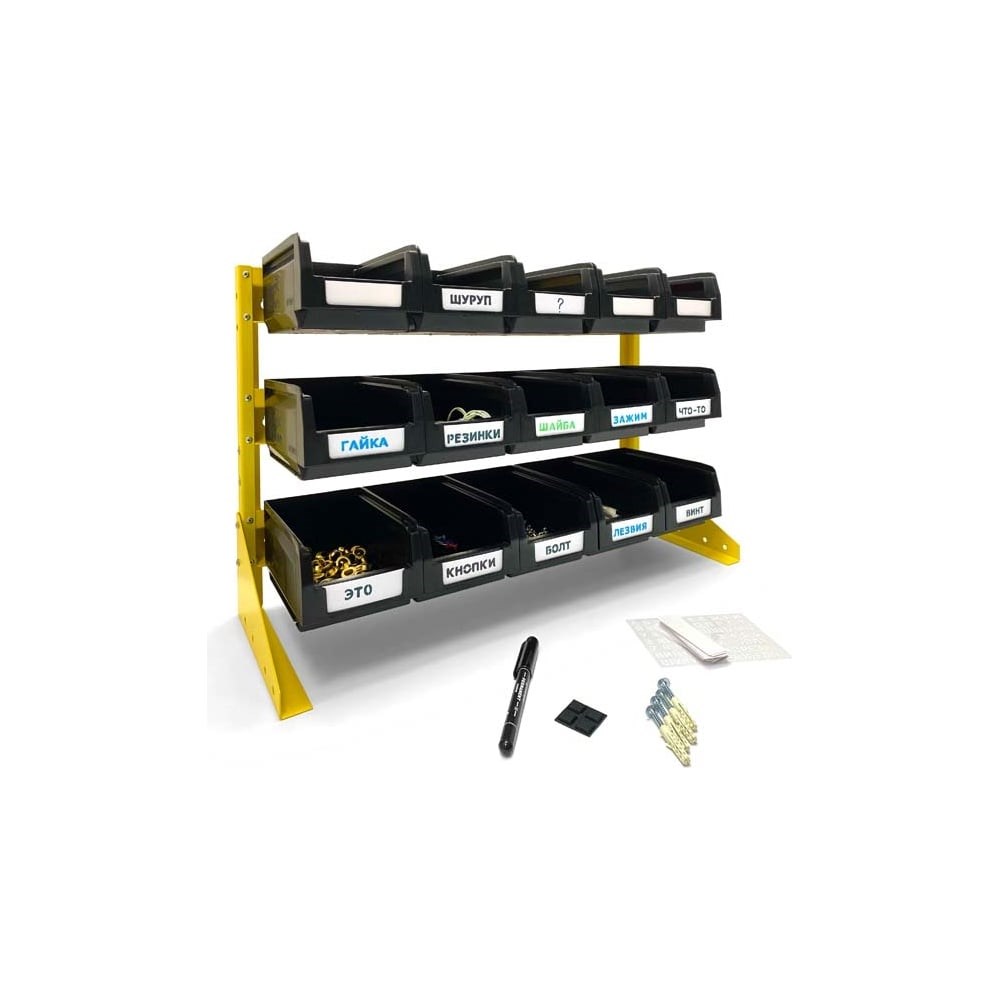 Органайзер для мелочей ООО ММПО 1-3x5 4673736779081 - это незаменимый помощник в организации рабочего пространства мастерской и сборочного цеха. Представляет собой односторонний органайзер для адресного хранения мелочей и крепежа. Рассчитан на 15 мест хранения в лотках размером 165х100х75 мм. Данная моедль имеет соответствующие зацепы для лотков и уклон, чтобы лотки не "клевали" под нагрузкой. В основании опор имеются отверстия для жесткого крепления к поверхности, а также резиновые опоры для защиты поверхностей от царапин. В спинке органайзер имеет отверстия для крепления на стену, укомплектован стеновым крепежом. Для повышения устойчивости опоры можно увеличить. Достаточно их отсоединить от каркаса, открутив 2 винта, и присоединить к каркасу короткой стороной. Левая опора станет правой, а правая левой. Данная модель укомплектована лотками, адресными бирками, маркером и трафаретом для комфортной организации рабочего места.