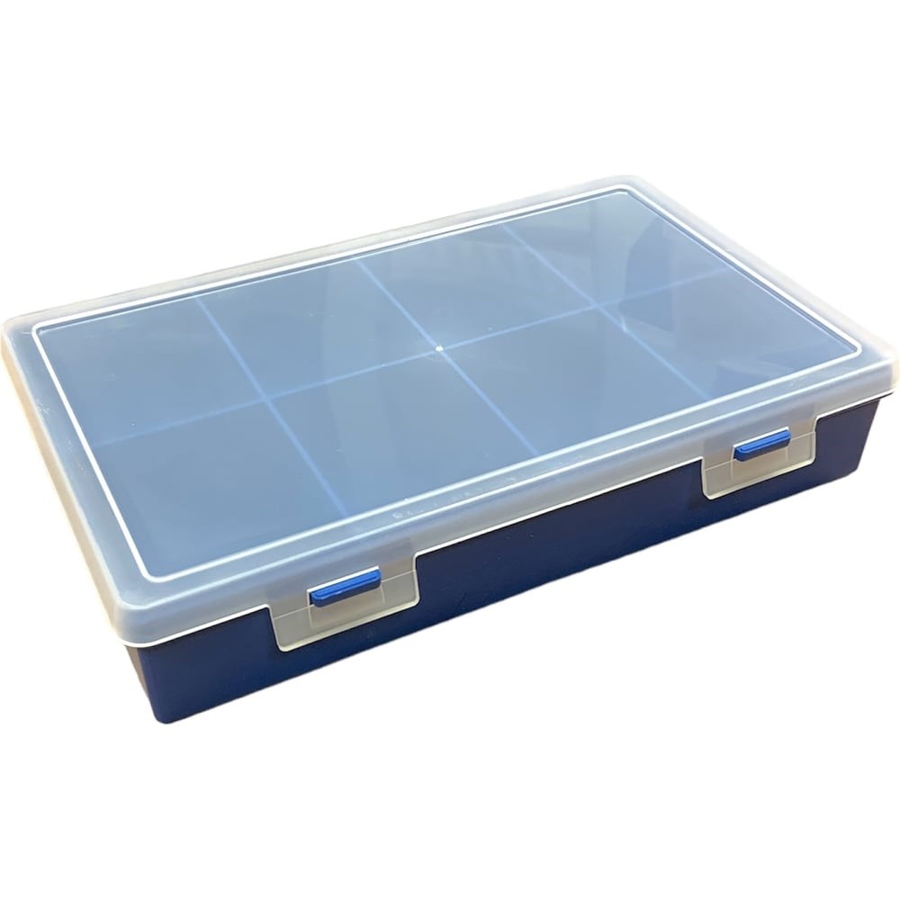 Органайзер предназначен для хранения и переноски мелких крепежей, изготовлен из высококачественной пластмассы. Восемь ячеек различных размеров для грамотной организации рабочего пространства. Прозрачная крышка позволяет увидеть содержимое органайзера.