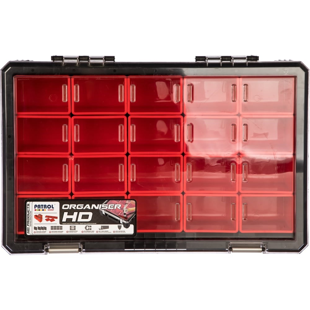 Органайзер 20 емкостей 39х60х11см PATROL HD 600 146140 подойдет для транспортировки различного крепежа и прочих мелочей, которые пригодятся в строительстве, ремонте или монтаже различных конструкций. Благодаря наличию глубоких отделений общая вместимость ящика может превышать тысячу элементов. При необходимости каждую секцию можно извлечь отдельно.