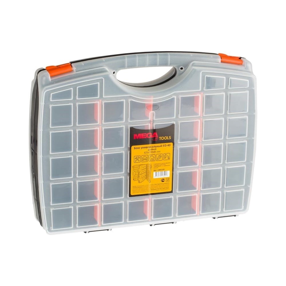Пластиковый двойной бокс ProMega jet для хранения и переноски мелочей/метизов и различных швейных принадлежностей. Съемные вставки с каждой стороны позволяют регулировать количество отсеков и моделировать внутреннее пространство. Компактен, эргономичен, функционален. Модель ED-40. Компактный, занимает мало места; Прозрачная крышка создает дополнительные удобства при хранении; Органайзер с двух сторон увеличивает полезный объем ящика; Замки плотно фиксируют крышки с обеих сторон, что обеспечивает сохранность вещей при транспортировке.