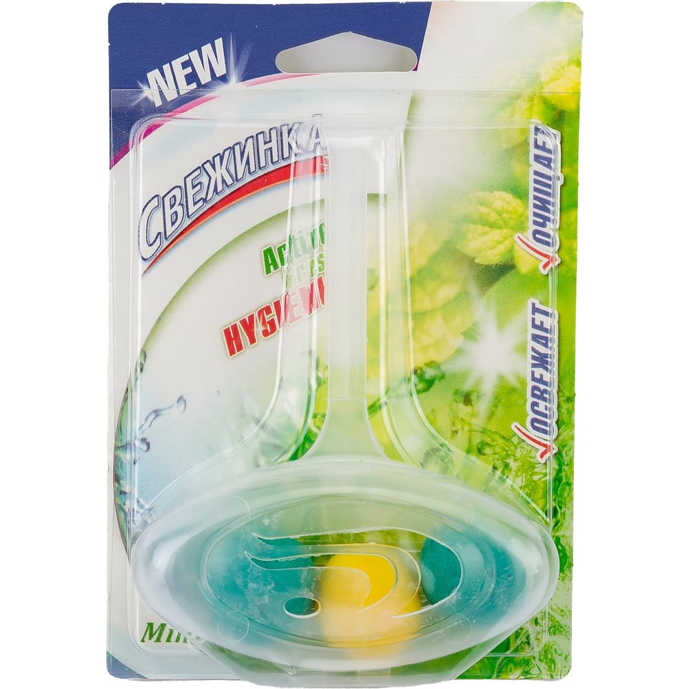 Освежитель Свежинка Блистер WC шариковый мята 40 гр 1986 - одновременно моющее и освежающее средство для унитаза длительного действия. Благодаря трем разным по назначению шариковым компонентам с концентрированной отдушкой, шариковый освежитель WC на 50% эффективнее моет, дезинфицирует и ароматизирует унитаз, чем обычные освежители WC. Освежитель WC уничтожает бактерии, препятствует отложению известкового налёта, водного и мочевого камня.