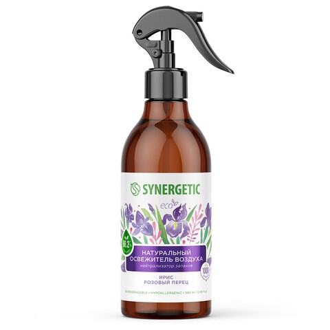 Освежитель воздуха 380 мл SYNERGETIC "Ирис и розовый перец", биоразлагаемый, нейтрализатор запахов, спрей, 900002