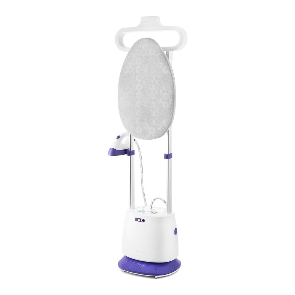 Отпариватель KITFORT КТ-996 незаменим для оперативного приведения одежды в порядок, для глажки занавесок, обивки мебели, кровати. Вода из резервуара подаётся в бойлер помпой, что позволяет получать устойчивую подачу пара. Большой объем резервуара позволяет долгое время использовать аппарат без добавления воды. Насадка легко чистит загрязнённые поверхности, а также убирает шерсть домашних животных, волосы, ворс. Дополнительные характеристики: Длина шнура: 1.8 м. Длина парового шланга: 1.5 м. Высота отпаривателя с разложенной стойкой: 1.6 м. Ширина плечиков: 40 см. Размер гладильной доски: 53х33 см.