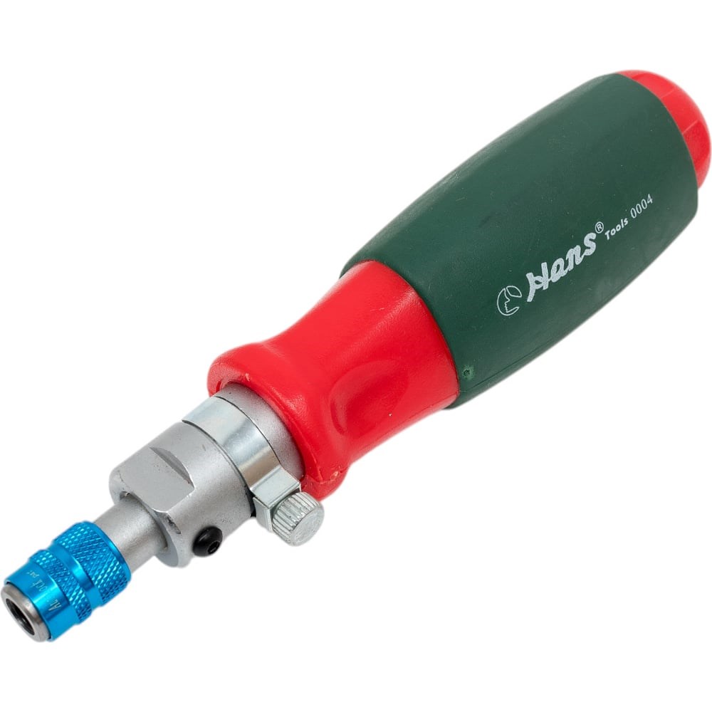 Отвертка для бит HANS с фиксатором и трещоточным механизмом 165 мм 0004 меет высокую прочность. Инструмент подходит для типовых бит 1/4 дюйма. Профилированная рукоять обеспечивает надежный хват. Отсутствие скольжения существенно упрощает процесс затягивания крепежа.