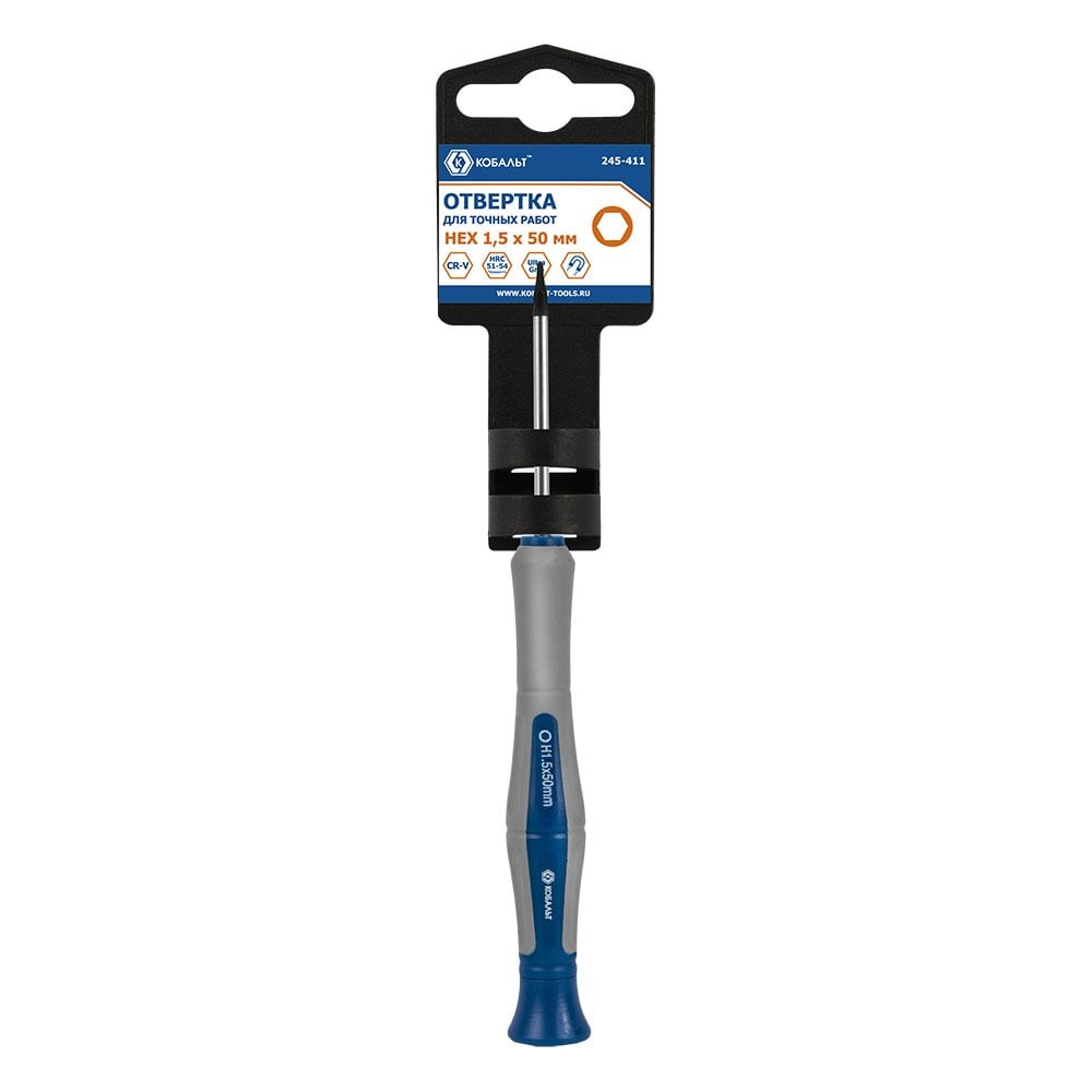 Отвертка для точных работ HEX 1.5 х 50 мм CR-V,подвес КОБАЛЬТ Ultra Grip 245-411