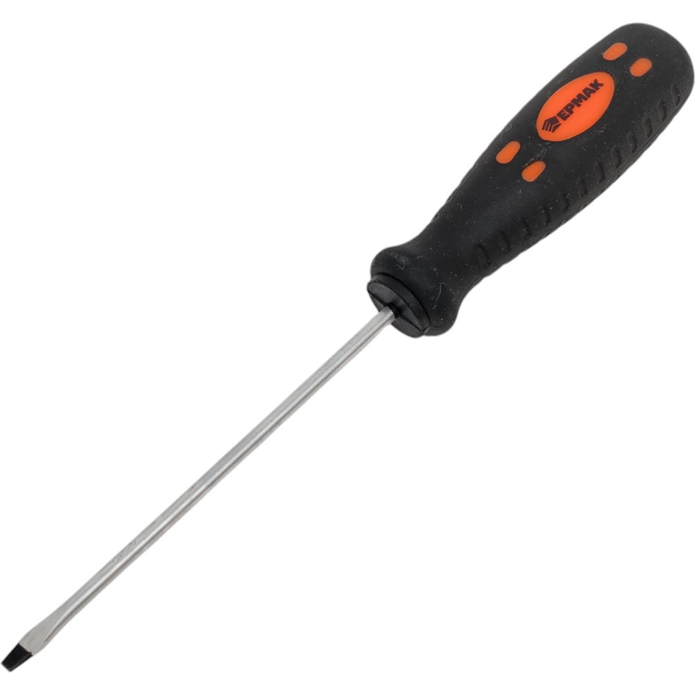 Отвертка с прорезиненной ручкой ЕРМАК SL 3,2x100мм (-) 651-092 подходит для монтажа винтов и шурупов. Удобная рукоятка не скользит в ладонях. Инструмент имеет высокую прочность: стержень надежно закреплен в рукояти. Сталь устойчива к деформациям, изгибу и скручиванию.
