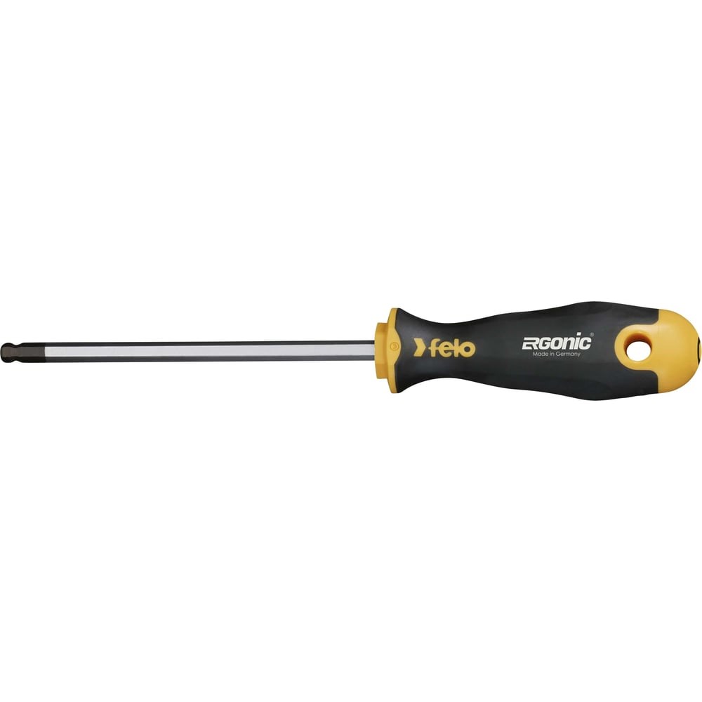 Отвертка Felo шестигранный ключ 3,0 мм с шаровым окончанием 42730340 предназначена для работ с крепежом типа HEX. Технология двухкомпонентной рукоятки обеспечивает комфортную работу, удобный хват и высокую передачу максимального крутящего момента. А продуманный дизайн в виде плоских граней не позволяет инструменту скатываться с поверхности. Ударопрочный стержень изготовлен из высококачественной инструментальной стали (CrMoV), закаленной в масле. Черный наконечник обеспечивает точность посадки в крепеж. Отверстие в рукоятке служит для удобного подвесного хранения инструмента, а также использования в качестве рычага.