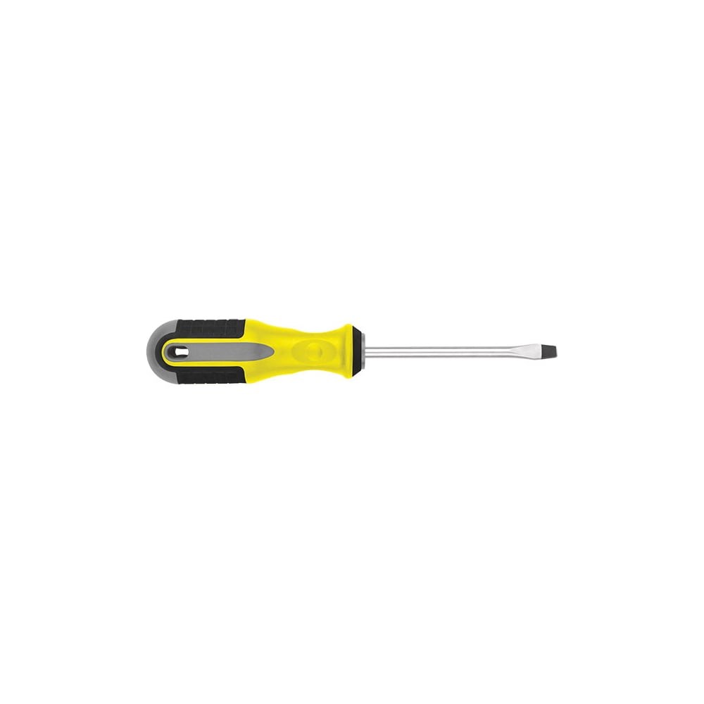 Отвертка FIT Старт CrV сталь, прорезиненная ручка, 8x150 мм SL 55189 используется для установки крепежа. Пластиковая рукоять дополнена антискользящими вставками. Есть удобное отверстие для подвеса.