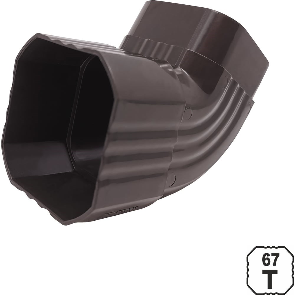 Колено трубы 67 является универсальным элементом системы труб 67.Элемент может соединяться с воронками и изменять направления отвода на 90 градусов. Также может использоваться как наконечник трубы.Цвет коричневый, материал- ПВХ.