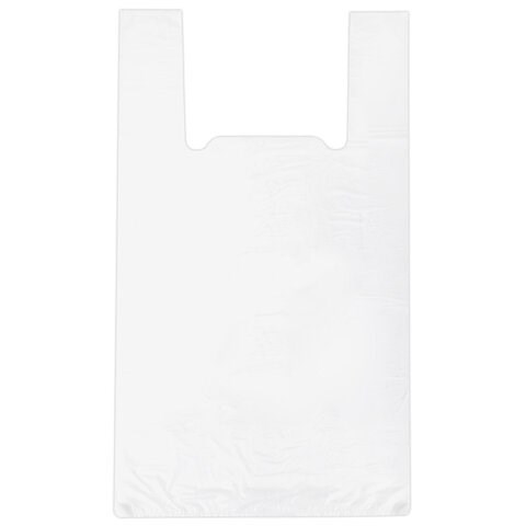Пакет "майка" КОМПЛЕКТ 100 штук, 28+15х55, ПНД белый, 15 мкм, LAIMA, 700787