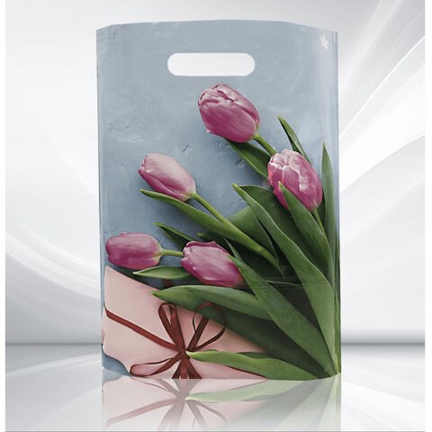 Пакет с вырубной ручкой ПВД, 40х31 см, "Тюльпаны", 60 мкм, н00212987