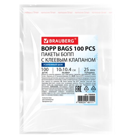 БОПП-упаковка BRAUBERG выполнена из прочного, прозрачного и влагостойкого полипропилена, который подчеркивает эстетику продукта и делает его более привлекательным. Материал надежно защищает содержимое от влаги и пыли, а удобный клеевой клапан обеспечивает быстрое запечатывание. Усиленный шов предотвращает разрывы и повышает долговечность упаковки.