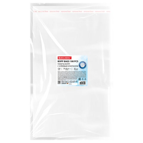 БОПП-упаковка BRAUBERG выполнена из прочного, прозрачного и влагостойкого полипропилена, который подчеркивает эстетику продукта и делает его более привлекательным. Материал надежно защищает содержимое от влаги и пыли, а удобный клеевой клапан обеспечивает быстрое запечатывание. Усиленный шов предотвращает разрывы и повышает долговечность упаковки.