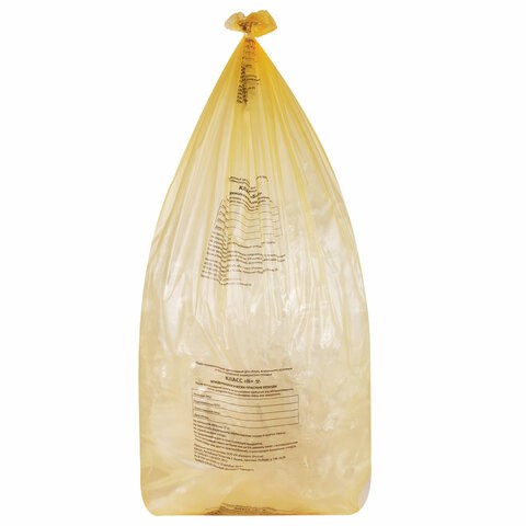 Пакеты для медицинских отходов КОМПЛЕКТ 50 шт., класс Б (желтые), 120 л, 70х110 см, 16 мкм, Респект
