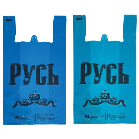Пакеты "майка", КОМПЛЕКТ 100 шт., 30+16х55 см, ПНД, "Русь", СИНИЕ, 25 мкм, ЮПЛАСТ, ЮМАЙ1072