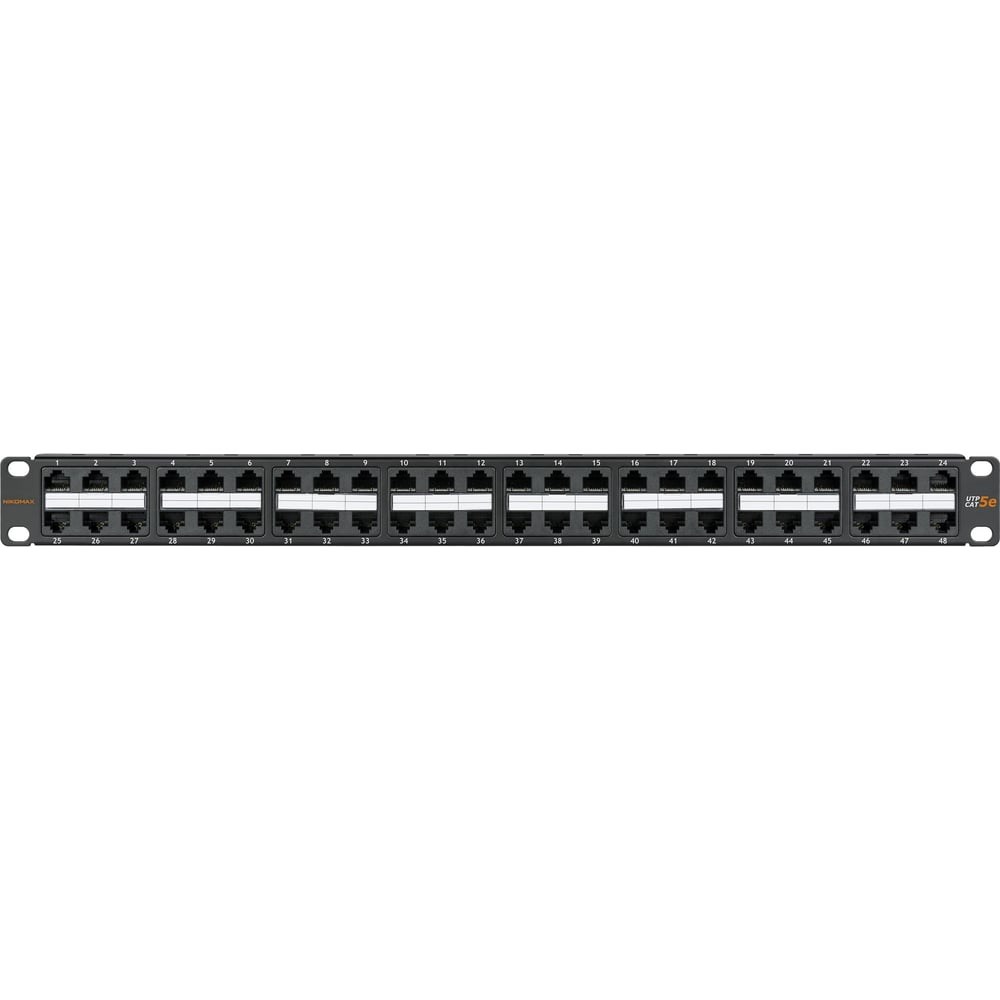 Панель NIKOMAX, 19", 1U, 48 портов, категория 5e, RJ45/8P8C, неэкранированная, черная NMC-RP48UD2-1U-BK
