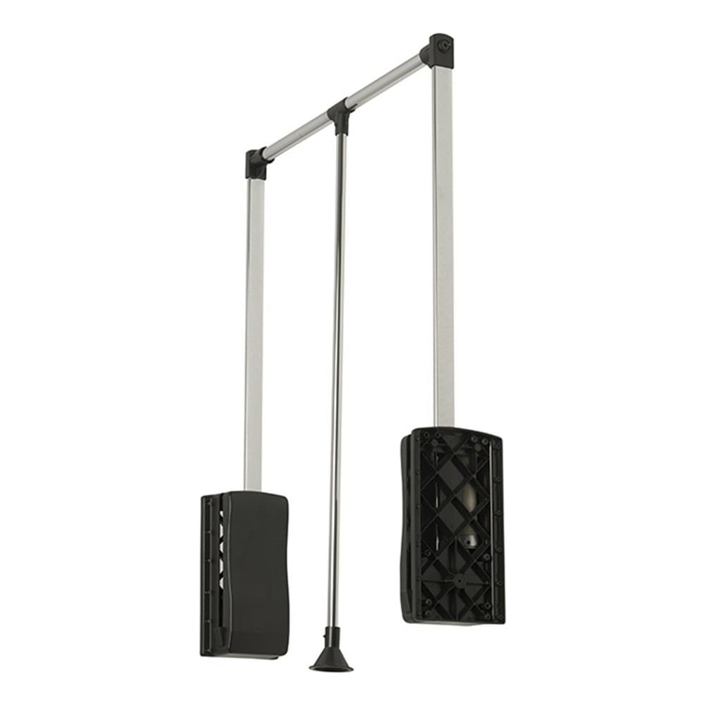 Пантограф 83/115 стальной с газовым амортизатором, черный, в модуль 875-1200 мм - гардеробный механизм, посредством которого опускается штанга с одежными вешалками в шкафу. Вы открываете (отодвигаете) дверь шкафа, тянете за ручку механизма, перекладина с вешалками смещается вниз, и вы берете нужный предмет одежды.Пантограф имеет фиксацию в верхнем и в нижнем положениях.Важная особенность механизма: штангу легче опускать, когда она нагружена вешалками с одеждой. Без нагрузки опускать штангу тяжелее.Механизм выдерживает нагрузку не более 12 кг.Телескопическая штанга перед установкой в шкаф регулируется в пределах 83-115 см.