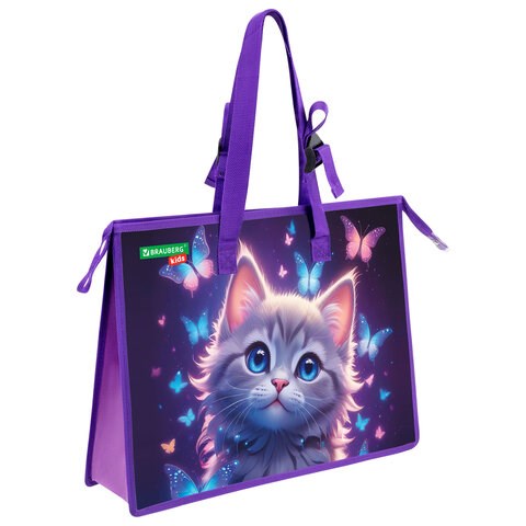 Папка для рисунков и чертежей с регулируемыми ручками BRAUBERG KIDS А3, 1 отделение, карман внутри, "Curious cat", 273414