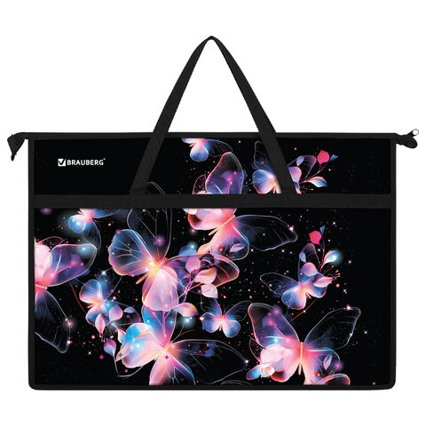 Папка для рисунков и чертежей с ручками BRAUBERG А3, пластик, молния сверху, "Butterflies", 273412