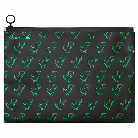 Папка для тетрадей BRAUBERG А4, 1 отделение, пластик, на zip-lock-молнии, "Dino matrix", 272106