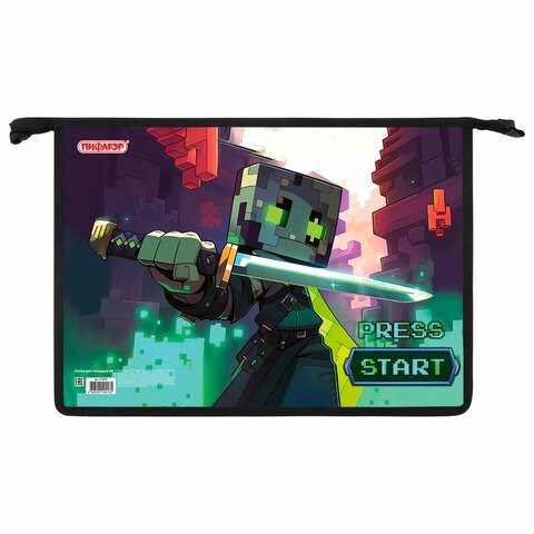 Папка для тетрадей ПИФАГОР А4, 1 отделение, картон/пластик, на молнии, "Sharp sword", 273342