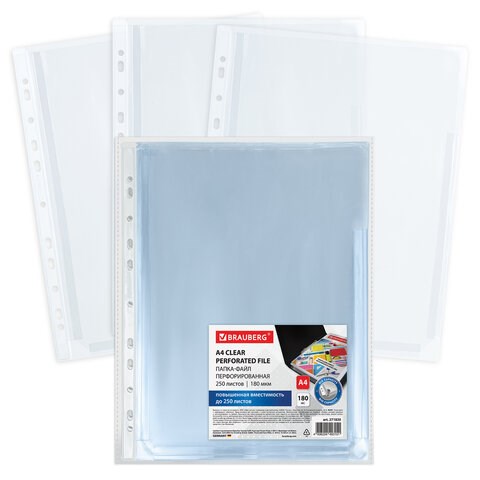 Папка-файл перфорированная 1 штука БОЛЬШОЙ ВМЕСТИМОСТИ до 250 л., A4, ПВХ, 180 мкм, BRAUBERG, 271830