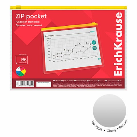 Папка-конверт на ZIP-молнии формат B6 (200х151 мм), прозрачная, ассорти, ERICH KRAUSE, 4564