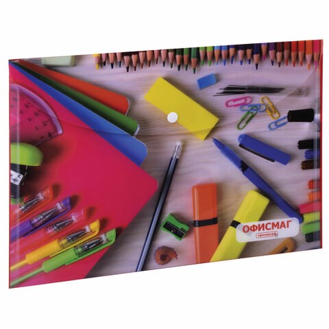 Папка-конверт с кнопкой ОФИСМАГ, А4, 160 мкм, до 100 листов, цветная печать, 228053
