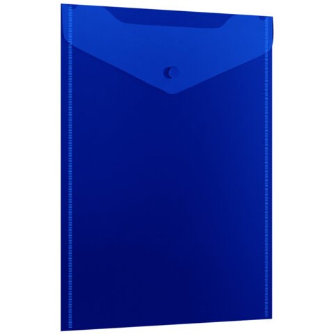 Папка-конверт с кнопкой прозрачная А4 BRAUBERG UNIVERSAL, вертикальная, синяя, 0,15 мм, 273076