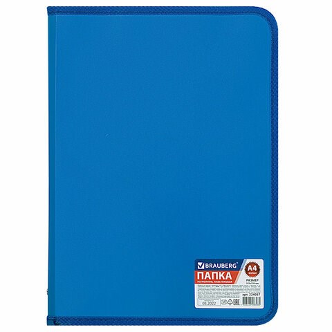 Папка на молнии пластиковая BRAUBERG "Стандарт", стандартная фактура, А4, 325х230 мм, матовая, синяя, 224057