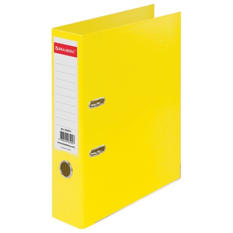Папка-регистратор BRAUBERG "EXTRA" в формате А4 вертикальной ориентации - классический вариант хранения документов. Чем толще в папке корешок, тем больше листов можно расположить: ширина корешка в 75 мм позволяет разместить до 500 листов. Изготовлена из плотного картона, ламинированного с двух сторон цветной яркой пленкой из полипропилена, который не имеет резкого запаха, более долговечный и морозоустойчивый. Благодаря такому плотному покрытию допустима влажная уборка изделия. Нижние края папки защищены металлическим уголком, что позволяет служить в 2 раза дольше. Прорези для колец на внешней крышке позволяет оставаться папке закрытой даже при большом количестве бумаг. Яркий желтый цвет папки-регистратора серии "EXTRA" - смелое решение, чтобы разбавить серые рабочие будни.