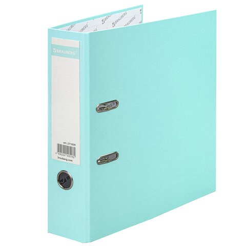 Папка-регистратор BRAUBERG PASTEL ламинированная, 75 мм, цвет мятный, 271839