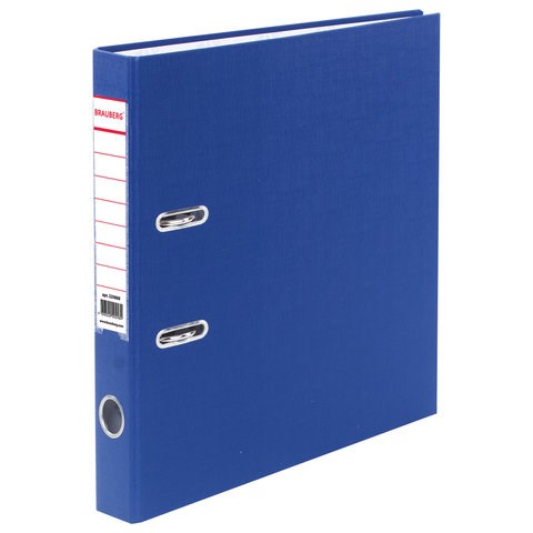 Папка-регистратор BRAUBERG с покрытием из ПВХ, 50 мм, синяя (удвоенный срок службы), 220888
