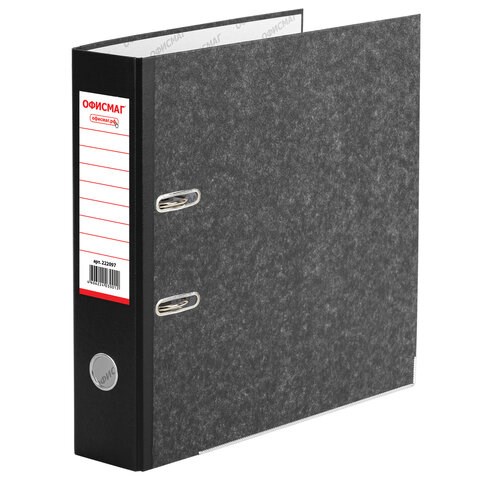 Папка-регистратор ОФИСМАГ, фактура стандарт, с мраморным покрытием, 75 мм, черный корешок, 222097