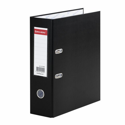 Папка-регистратор ШИРОКИЙ КОРЕШОК 90 мм с покрытием из ПВХ, черная, BRAUBERG, 271835