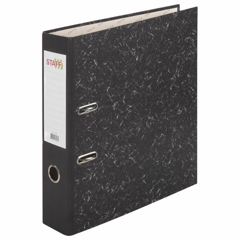 Папка-регистратор STAFF "Basic" БЮДЖЕТ с мраморным покрытием, 70 мм, без уголка, черный корешок, 227185