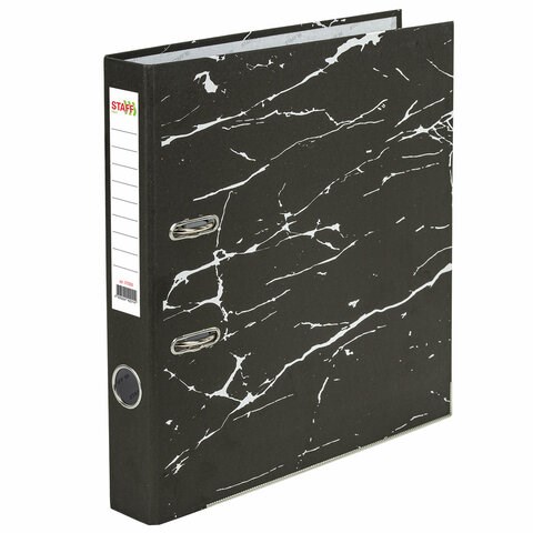 Папка-регистратор STAFF "Profit" с мраморным покрытием, 50 мм, с уголком, черная, СЪЕМНЫЙ МЕХАНИЗМ, 272008