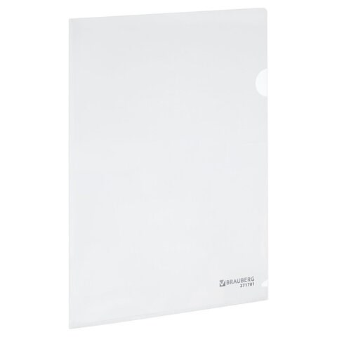 Папка-уголок жесткая А4, прозрачная, 0,15 мм, BRAUBERG EXTRA, 271701